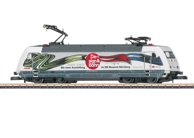 Vorbild: Schnellzuglokomotive Baureihe 101 der Deutschen Bahn AG (DB AG). Werbegestaltung „Design & Bahn“. Lok-Betriebsnummer 101 003-2. Aktueller Betriebszustand 2021